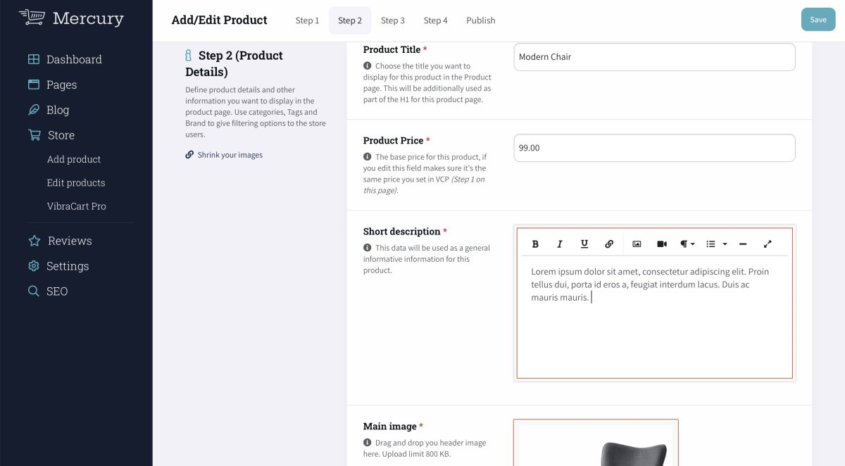 Step 2 (Product details)